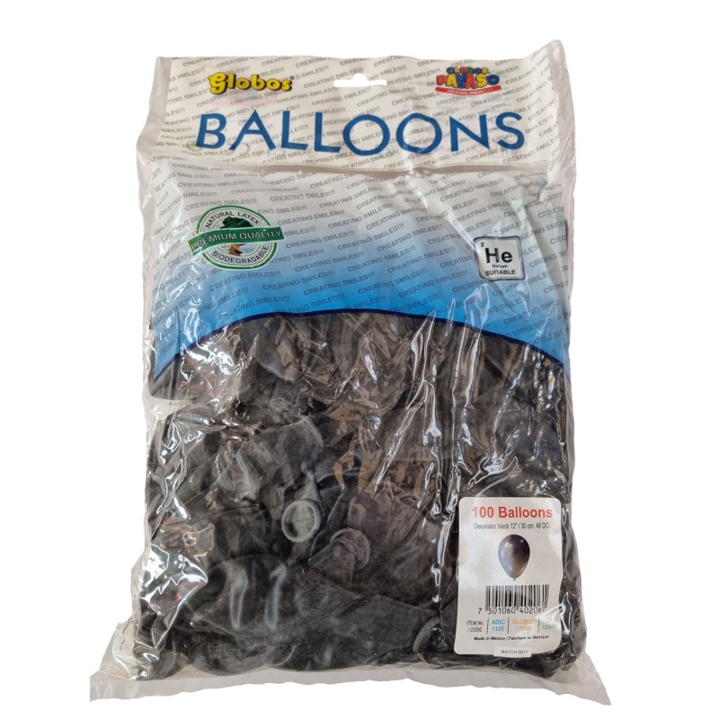 Ballonnen | Rond | Zwart | Globos | 100 stuks