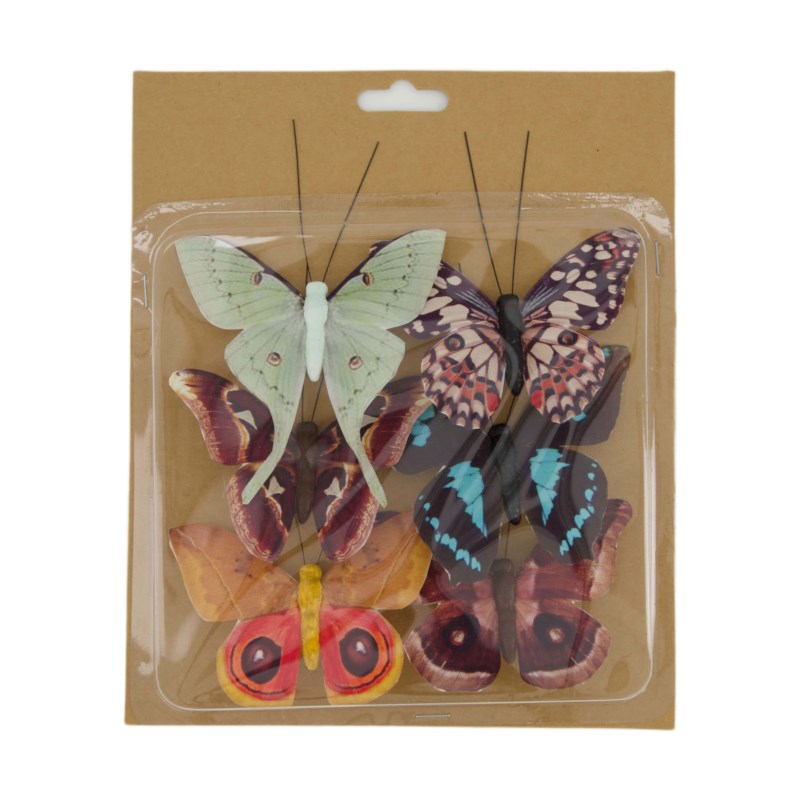 Decoratieve vlinders op clip die gebruikt kunnen worden voor het maken van kransen en bloemstukjes.