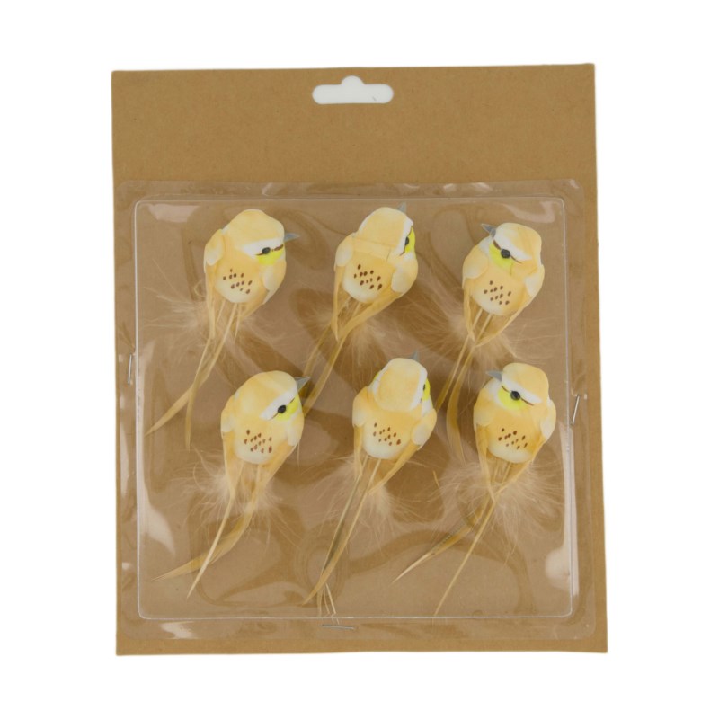 Decoratieve kleine vogeltjes op een clip die gebruikt kunnen worden voor het maken van kransen en bloemstukjes.