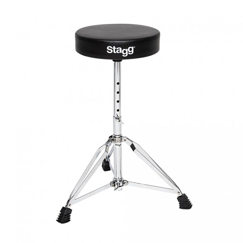 De Stagg DT-32CR is een robuuste drumkruk die zorgt voor een stevige en comfortabele zit achter je drumstel. Dankzij de rubberen voetjes aan de dubbel-gebeugelde poten blijft de kruk stevig op zijn plaats, zonder weg te glijden. Het zitvlak, gemaakt van zwart vinyl, biedt voldoende comfort om urenlang te kunnen spelen. Met een maximale belasting van 100 kg en de mogelijkheid om de hoogte in te stellen op 5 verschillende standen, is de DT-32CR geschikt voor drummers van allerlei niveaus en stijlen.