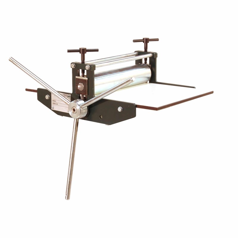 Etspers die direct op de onderwals wordt aangedreven d.m.v. een spaakwiel. Dit model staat op kunststof pootjes en er zijn een aantal extra gaten in de zijframes geboord, die gebruikt kunnen worden voor het vastzetten op een tafel of werkbank.