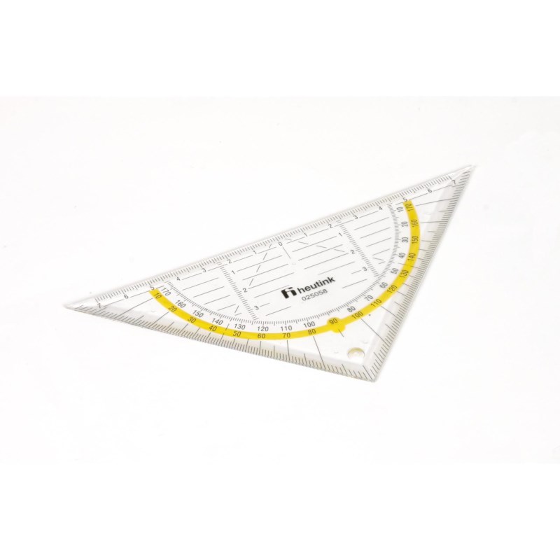 Transparante geodriehoek. De geodriehoek heeft een gele graadverdeling. Niet flexibel. Lengte 16 cm. Dikte is 0.2 cm..