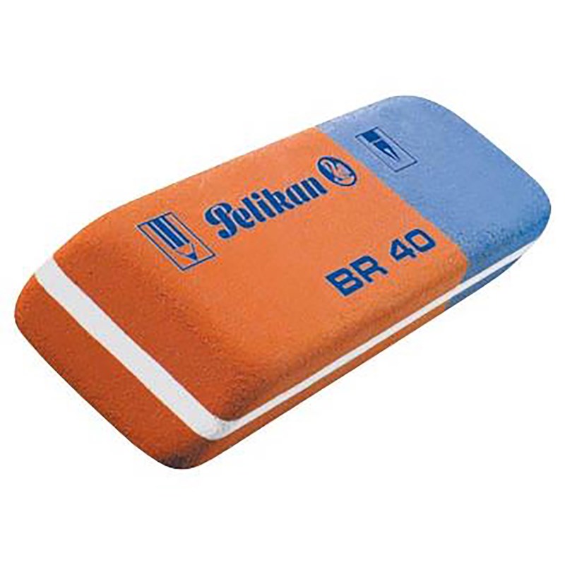 De rode kant is voor het weggummen van potlood en de blauwe kant voor het weggummen inkt.