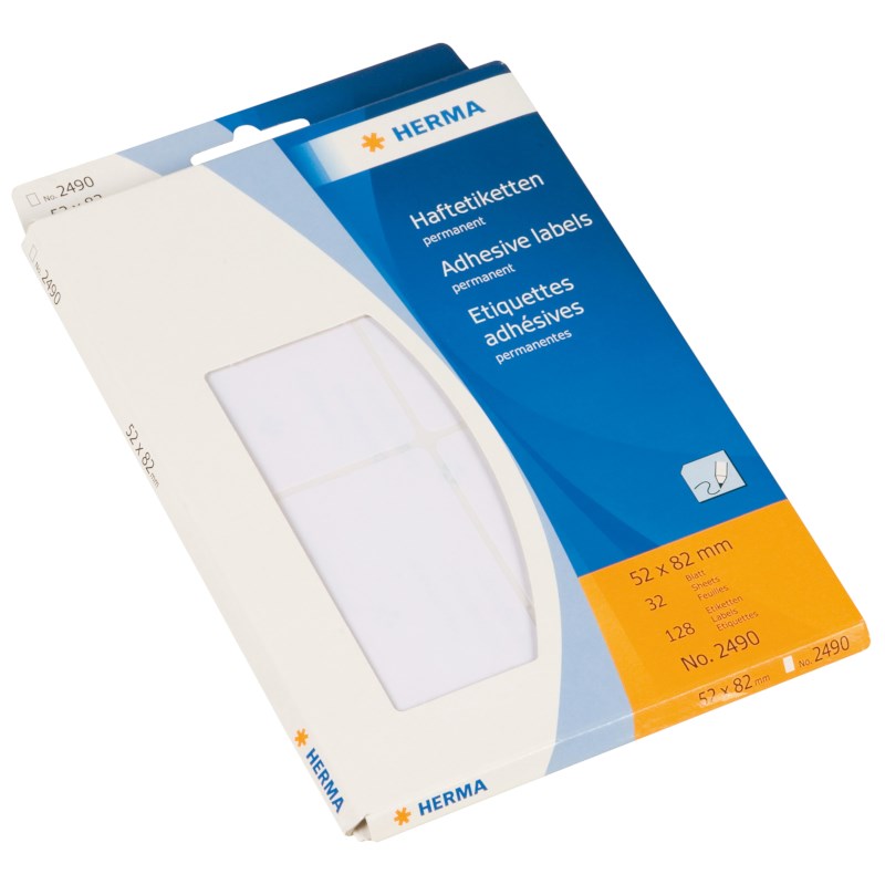 Rechthoekige witte etiketten. Afmeting: 54 x 80 mm.