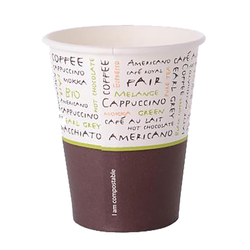 U krijgt geleverd: Een rol met 50 kartonnen drinkbekers met een PLA coating.