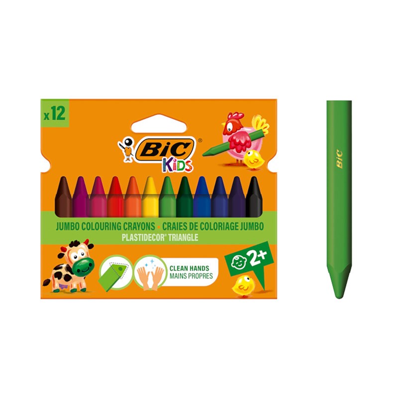 Driekantig kleurkrijt Bic Kids Plastidecor, speciaal ontworpen voor peuters van 30 maand en ouder die leren tekenen.