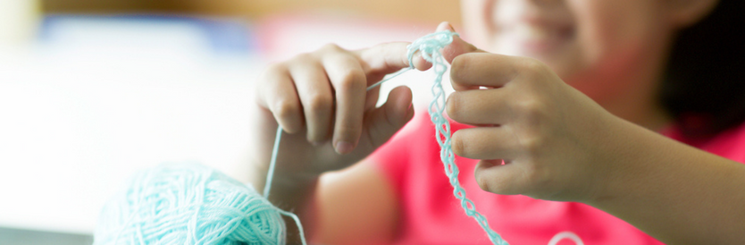 Vingerbreien is een speelse manier om de techniek van het breien te ontdekken. Brei voor de lol, om een sjaal te maken of doe een wedstrijdje wie het langste breiwerk maakt.