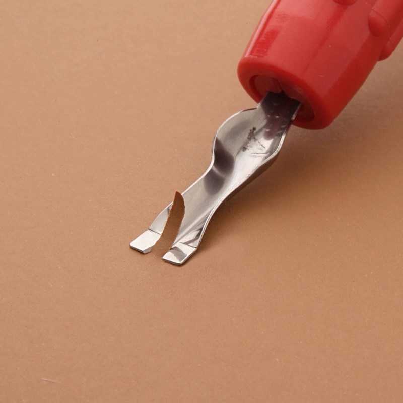 met behulp van het mes kun je niet te diep in het linoleum snijden