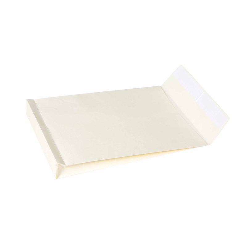 Stevige envelop 170 grams met plakstrip aan de korte zijde. Formaat: 26 x 37 x 3,8 cm. Doos à 125 stuks.