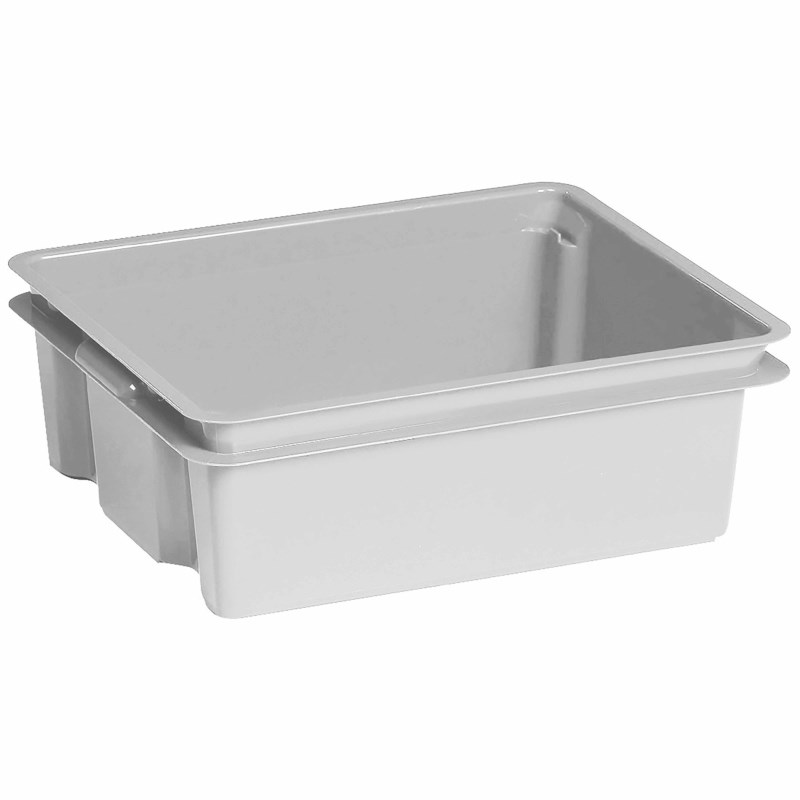 Stevige stapelbare lichtgrijze opbergbak zonder deksel, deze is apart aan te schaffen.