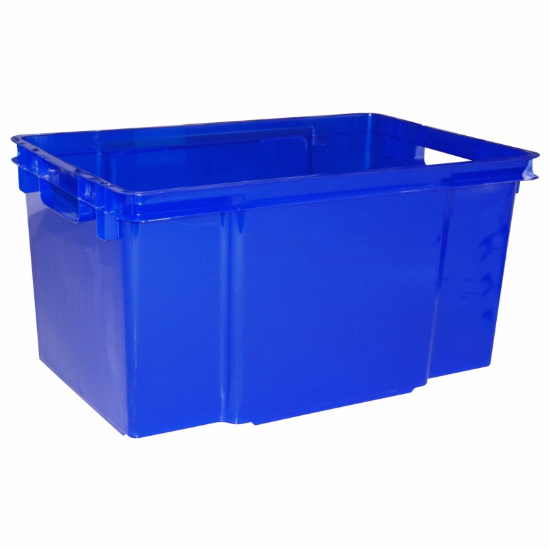 Stevige stapelbare blauwe opbergbak zonder deksel, deze is apart aan te schaffen.