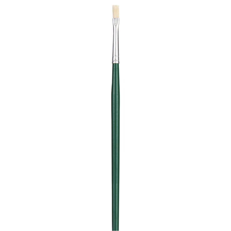 Wit gebleekt Chinees varkenshaar. Geschikt voor diverse verfsoorten. Lange, groen gelakte steel. Naadloze, gepolijste aluminium huls.