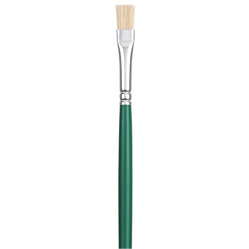 Wit gebleekt Chinees varkenshaar. Geschikt voor diverse verfsoorten. Lange, groen gelakte steel. Naadloze, gepolijste aluminium huls.