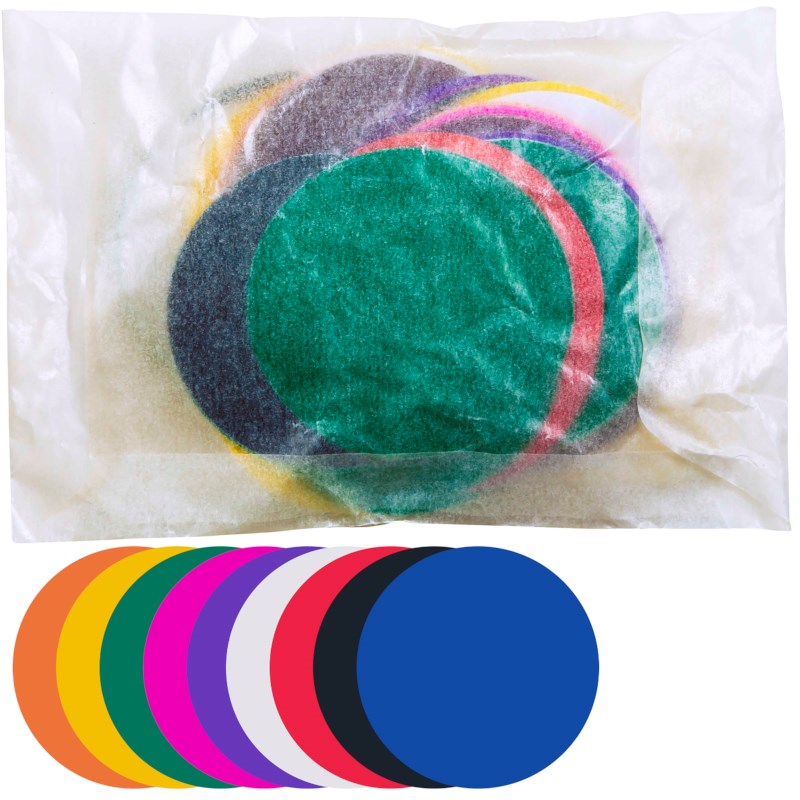 Plakfiguren in de vorm van cirkels (doorsnee 50 mm). Assorti kleuren.