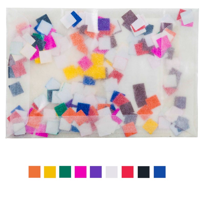 Plakfiguren in de vorm van vierkanten (zijde 8 mm). Assorti kleuren.