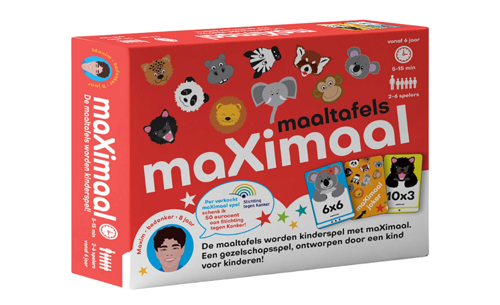 Om de maaltafels leuker en makkelijker aan te leren heeft Maxim (8 jaar) dit spel ontworpen. Een leuk en spannend spel om samen te spelen thuis én op school. Stimuleert spelenderwijs het automatiseren van de tafels.