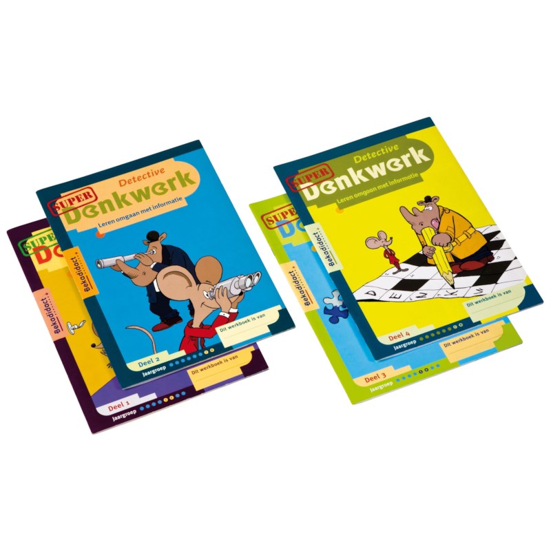 Ben jij op zoek naar nog meer extra uitdaging voor je kind, dan gaat Super Denkwerk nog net een stapje verder dan de gewone Denkwerk-boekjes. Speciaal voor die slimme jongen of meid die graag intrigerende uitdagingen aangaat en speurwerk op internet niet ut de weg gaat. Er staan 15 Super opdrachten in. Aan het eind van een taak volgt de beloning: jouw kind mag een vakje openkrassen waardoor een plaatje verschijnt. Zo ontstaat een leuk stripverhaal. De antwoorden zijn online vindbaar op de site van de uitgever. Het werkboek Super Denkwerk deel 1 is geschreven op het niveau van groep 5/6.