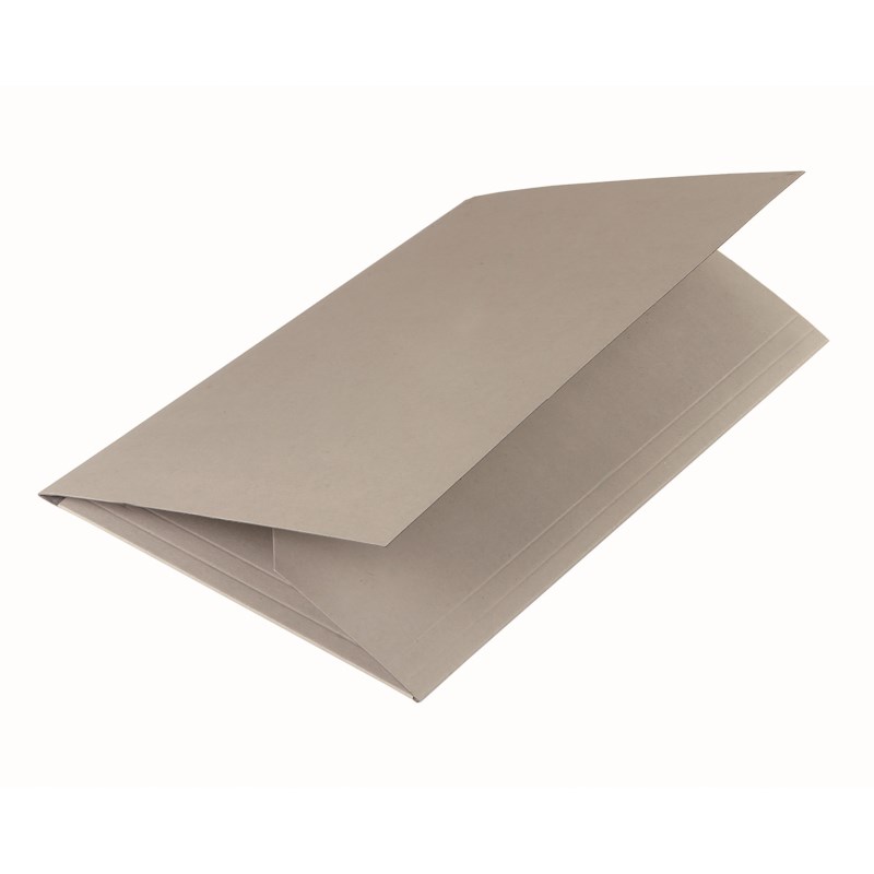 Stevige lichtgrijze kartonnen tekeningenmap, voor het beschermen, transporteren en bewaren van tekeningen. Voorzien van drie naar binnen te vouwen randen.