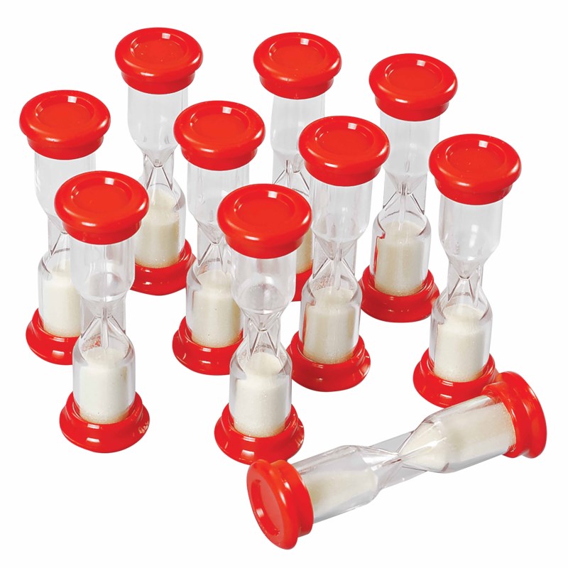 Een set met 10 zandlopers van 1 minuut.