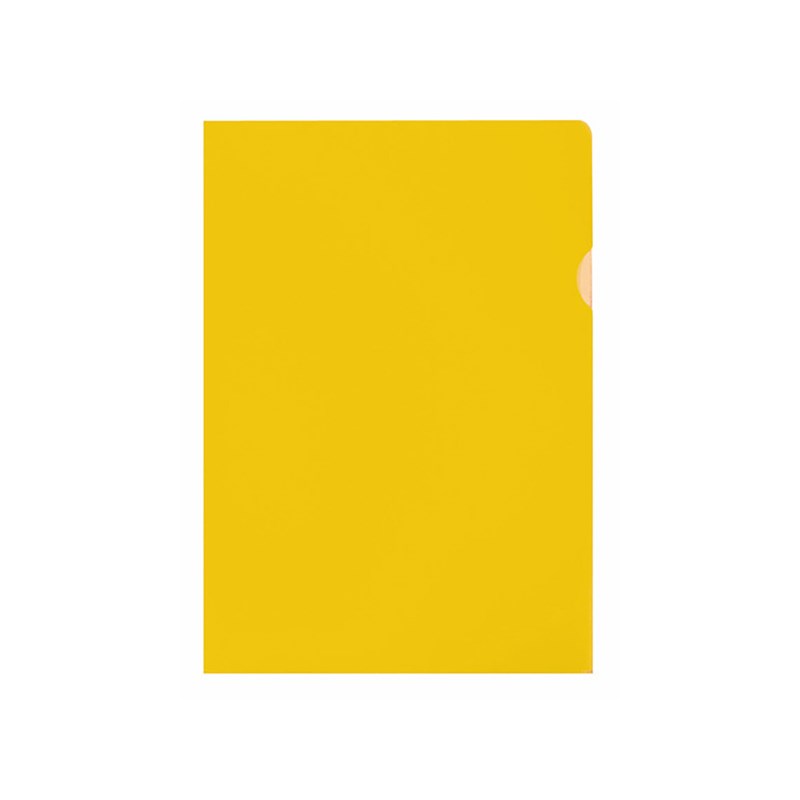 Generfde, transparante en antistatische gele A4 insteekhoes met één lange en één korte zijde open het zogenaamde L-model. Voorzien van een duimgreep, betreft een extra dikke 120 micron uitvoering en ze zijn verpakt per 10 stuks.