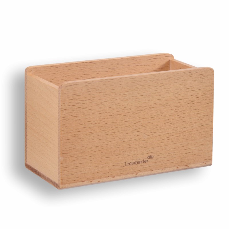 Magnetische beukenhouten houder voor het opbergen van diverse whitebordmaterialen.
