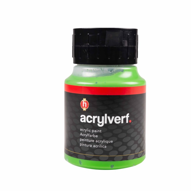 Heutink acrylverf is een acrylverf op waterbasis, na droging watervast. Inhoud flacon 500 ml.