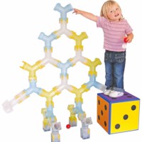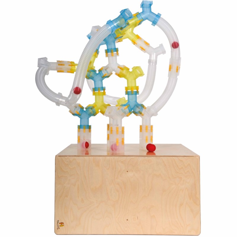 Creëer je eigen ballenbaan door de verbindingselementen in elkaar te steken en zo een labyrinth te maken.