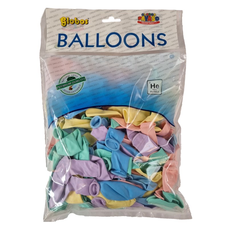 Mooie pastelkleurige ballonnen gemaakt van 100 % latex en 100 % biologisch afbreekbaar.