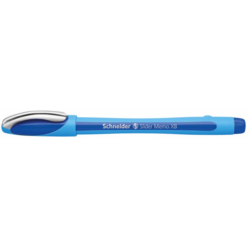 Blauwe balpen van het merk Schneider. Uitvoering: Slider Memo XB.