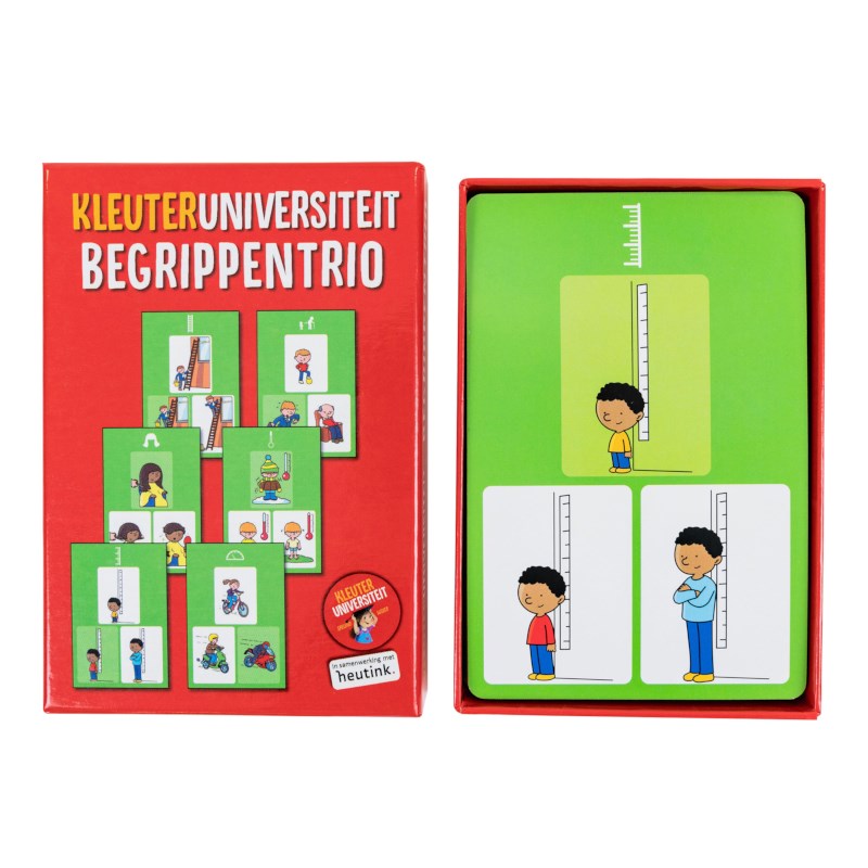 Begrippentrio oefent verschillende begrippen en stimuleert het taalbegrip en de woordenschat. Bij Begrippentrio is het verwoorden van de begrippen belangrijk om een set van drie kaarten te krijgen. In het spel komen de volgende begrippen aan bod: