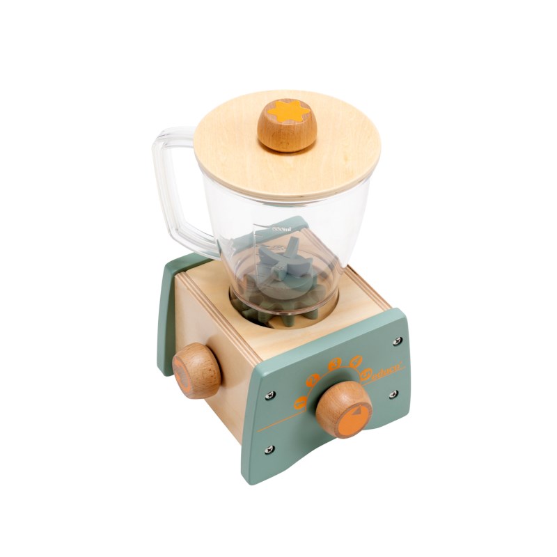 In de afneembare kom hakken en mixen kinderen groente en fruit, om vervolgens hun creaties uit te schenken. De knop ligt prettig in de hand en maakt bedienen eenvoudig. De Blender met draaiknop en messen brengt het spel tot leven en maakt de keukenhoek helemaal af.