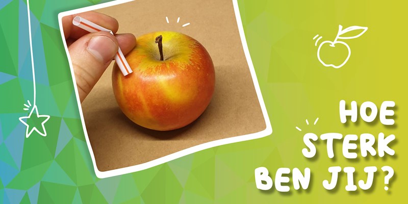 Heb je ooit al eens geprobeerd een rietje door een appel te prikken? Dan zul je vast gemerkt hebben dat dit moeilijk gaat. Het rietje buigt namelijk snel en dan kun je er niks meer mee. In dit proefje gaan we je laten zien hoe jij sterker kunt zijn dan de appel!