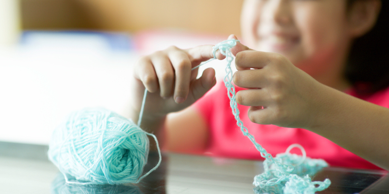 Vingerbreien is een speelse manier om de techniek van het breien te ontdekken. Brei voor de lol, om een sjaal te maken of doe een wedstrijdje wie het langste breiwerk maakt.