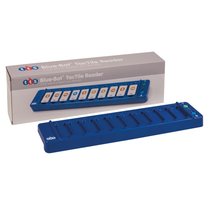 Koppel Blue-Bot aan de tactiele lezer. Plaats de tegels in de lezer. Druk op GO en geniet van wat er gebeurt. Je kunt Blue-Bot heel makkelijk programmeren op deze manier, en door te wisselen met stenen kun je eindeloos varieren. Als je wilt, kun je maximaal drie lezers achter elkaar plaatsen.
