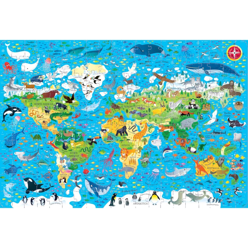 Tijdens het leggen van de puzzel leren kinderen welke dieren op welke continenten of oceanen leven en het boek geeft meer informatie over de dieren en hun leefomgeving. Boordevol interessante en leuke feiten over dieren.