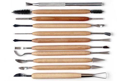 Boetseergereedschap voor het uitwerken van details in klei, boetseerwas, speksteen en sculpture blocks, 11 delige met allemaal verschillende spatels. set.Lengte 16 cm.