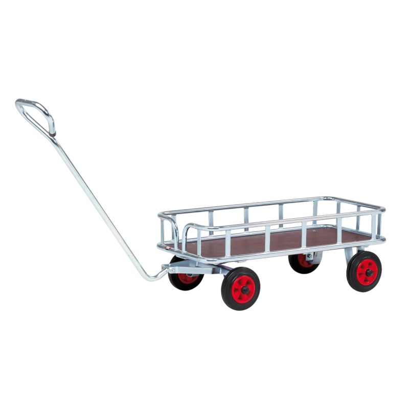 Neem je vriendjes mee in de bolderwagen en trek ze het hele plein over, of laad je spullen in de bolderwagen en breng ze naar de plek van bestemming. Deze bolderwagen is robuust, veilig en duurzaam. Frame van gegalvaniseerd buizenstaal, zonder scherpe hoeken of kanten. Met trekstang.