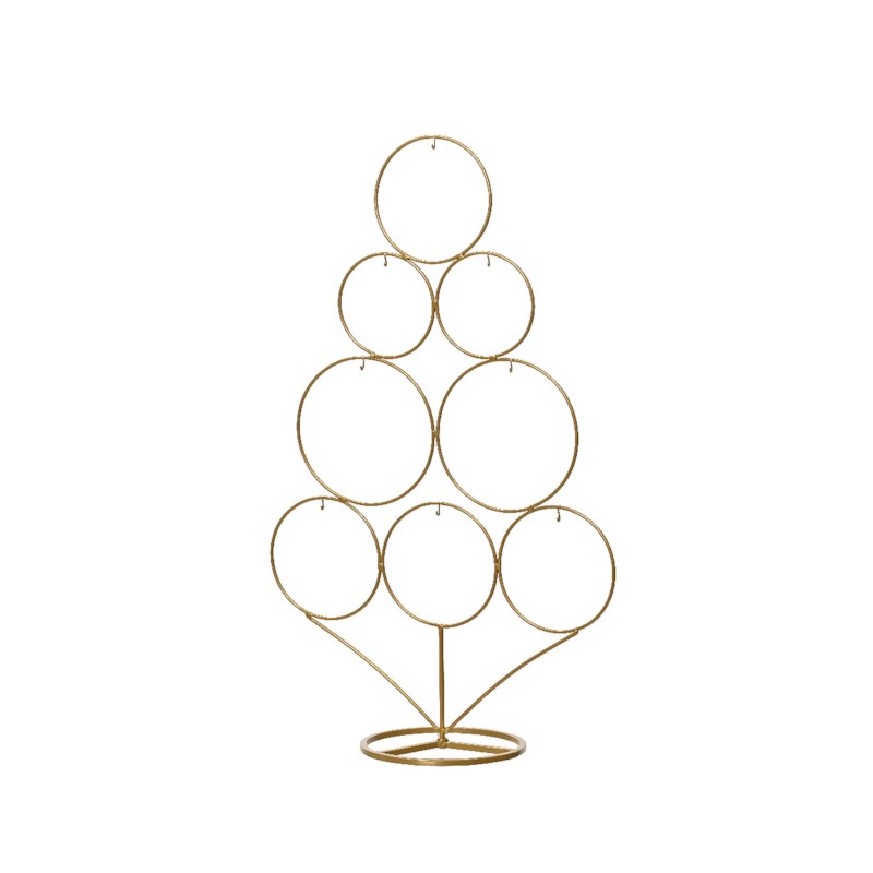 Een alternatief voor een kerstboom. Het stevige frame in de vorm van een piramide opgebouwd uit cirkels, kan versierd worden met kleine kerstballen, mos of andere kleine hangertjes. In de boom kunnen ook vrolijke kinderwerkjes worden gehangen.