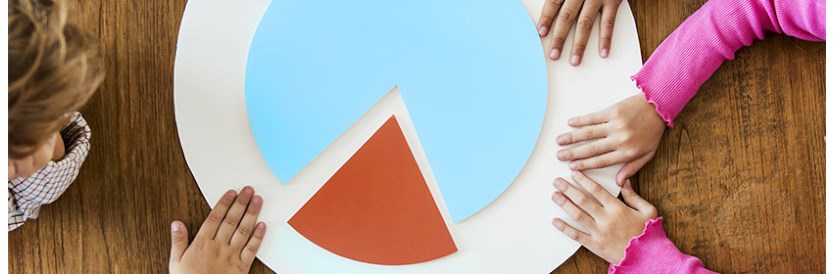 Laat je kind ontdekken hoe je op een eerlijke manier deelt. Daarmee verkennen ze namelijk ook de relatie tussen breuken: Hé, als ik een half doormidden snijd, heb ik twee kwarten en als ik die weer door midden snijd, heb ik vier achtsten! Dus: 1/2 = 2/4 = 4/8.