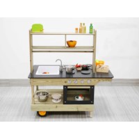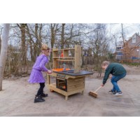 Door het grote werkblad van de keuken is hij perfect geschikt voor gebruik door meerdere kinderen tegelijk. De keuken is vanaf alle kanten te gebruiken en is makkelijk schoon te maken.