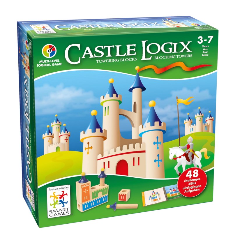 Zet de torens op de juiste plek. Alleen kan je niet zien wat er binnen in de torens gebeurt... Past het allemaal wel? Waar komt de kleine en waar de grote toren? Weet jij het kasteel op de juiste wijze te bouwen? Laat je hersens maar kraken. Het begint eenvoudig, maar naarmate de opdrachten vorderen wordt het steeds moeilijker. Een logisch denkspel vanaf 3 jaar.