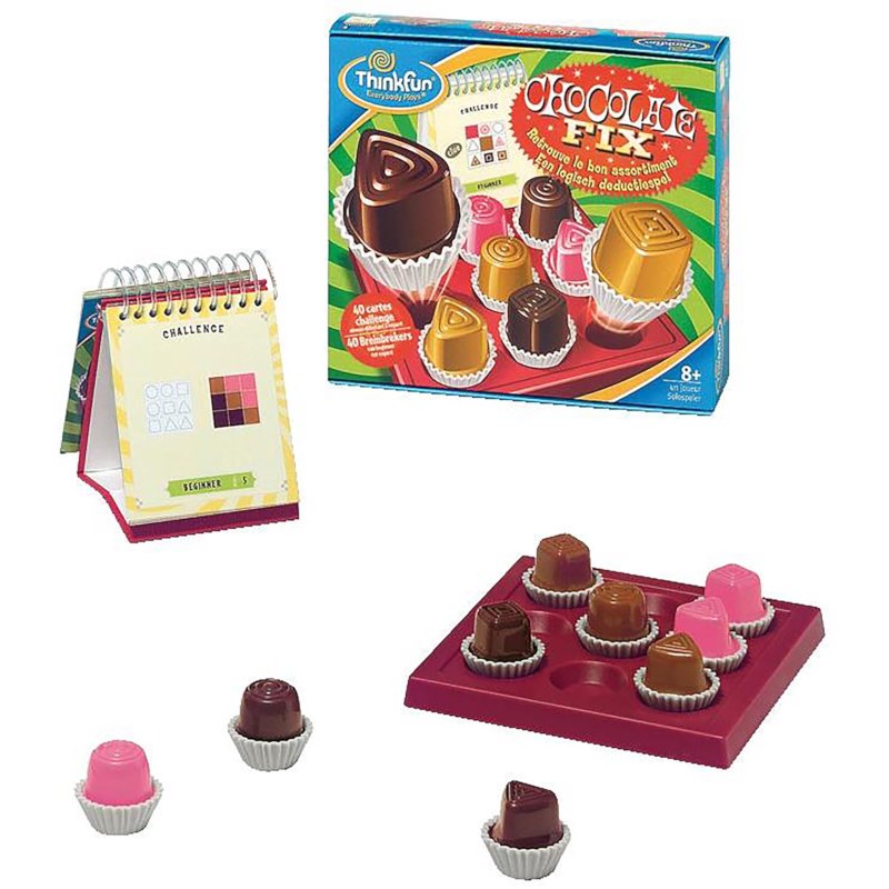 Spel Chocolate is een strategisch spel. Je wordt verleid om een hapje uit deze levensechte stukken van dit prachtige strategische spel te nemen. Het spel is gelijk aan Sudoku, spelers onderzoeken alle aanwijzingen op de opdrachtkaarten alvorens een zet te maken. Zodra zij ontdekken waar ze een chocoladestuk neer zetten, combineren zij deze kennis met de aanwijzingen om meer informatie te leren. Sommige aanwijzingen geven nauwkeurige of mogelijke plaatsen aan, terwijl anderen u enkel de symbolische kleur of de vorm geven. De uitdagingen die van beginner tot master gaan zullen de honger naar chocolade uren laten hunkeren. Inhoud: Engels boekje met 40 opdrachten van beginner tot master, 9 chocolade stukjes ( puur, melk en framboos).