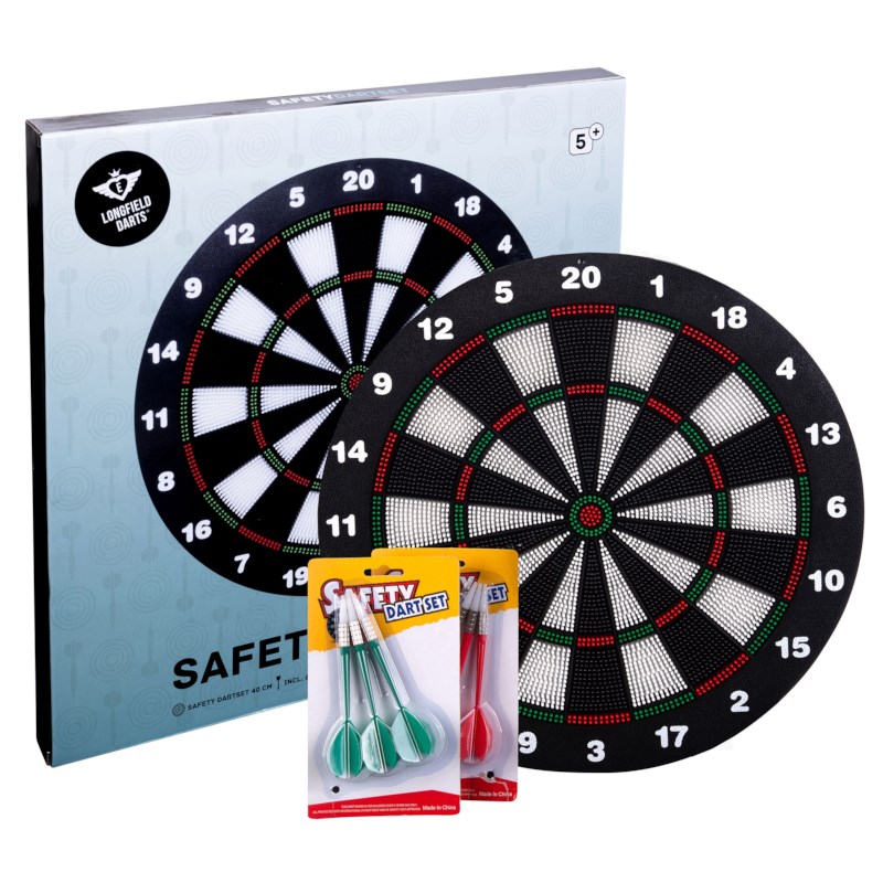 Deze dartset is vanwege de gebruikte materialen veilig om te gebruiken door kinderen. Het bord kan op tafel gezet worden of gewoon aan de wand bevestigd worden. De bijgeleverde pijlen hebben een stompe, kunststof punt.
