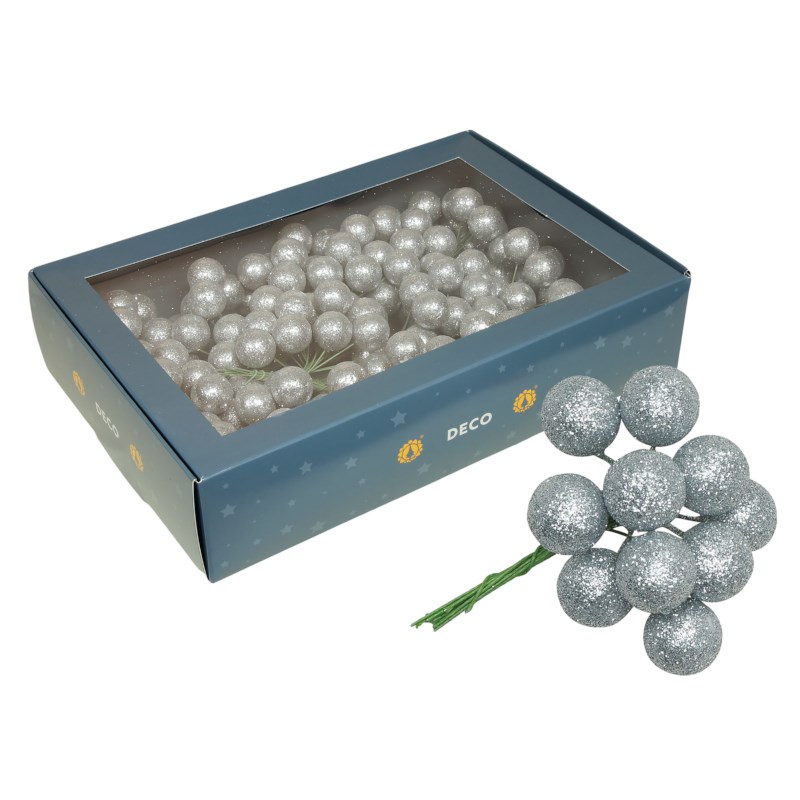 Decoratieve kleine balletjes met glitter die gebruikt kunnen worden voor het maken van kransen, herfsttaferelen en kerststukjes.