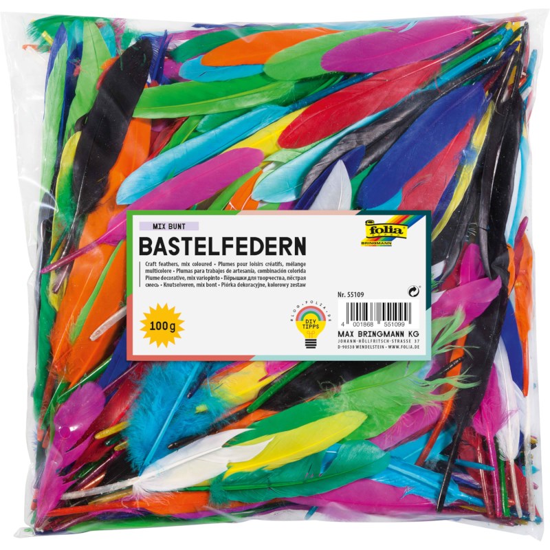 Veertjes in mooie heldere kleuren die geschikt zijn om een hoofdtooi mee te maken.