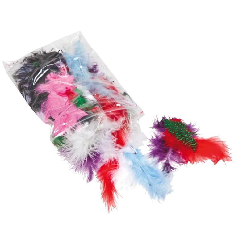 Decoratie veren | Bonte kleuren | Zak 45 stuks | Lengte 5-10 cm