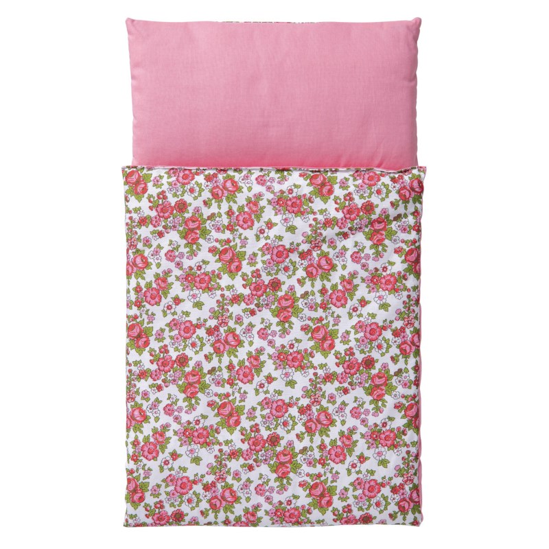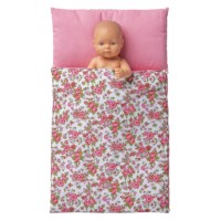Een dekbedsetje wat perfect in de poppenwandelwagen retro (apart verkrijgbaar) past. Het dekbedje heeft bovenaan een stiknaad waardoor er een kussen ontstaat. Als je het dekbedje dubbel vouwt, kan de baby er tussen slapen.