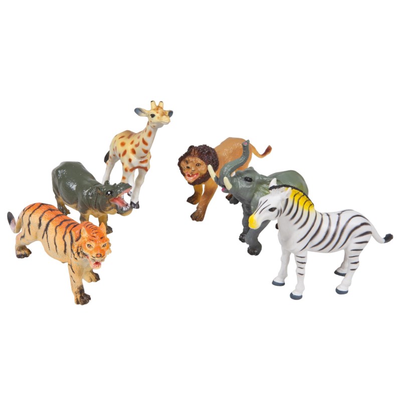 Set van 6 dieren uit de wildernis. Deze set dierentuindieren maakt iedere dierentuin compleet. De dieren zijn gemaakt van kunststof en kunnen daardoor tegen een stootje.