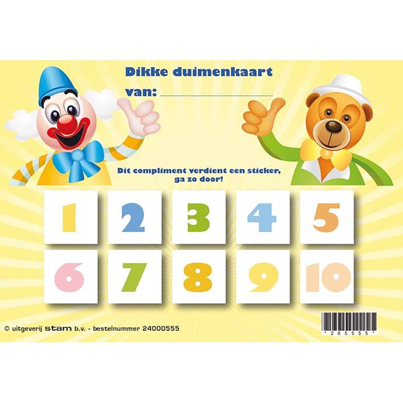 Dikke duimenkaarten in het thema Clowntjes om positief gedrag te belonen. Formaat: 14 x 20 cm (b x l). Pak à 50 stuks.