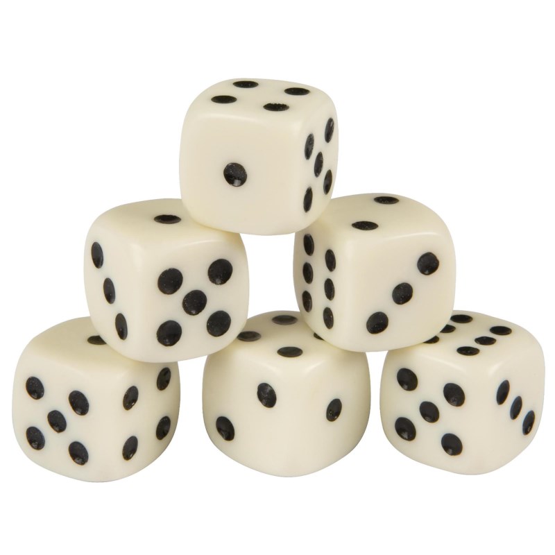 Dobbelsteen stippen - wit | Basisset | 16 mm | 6 stuks